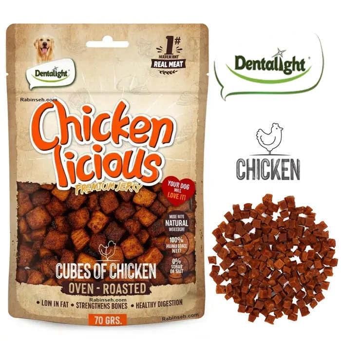 تشویقی سگ دنتالایت مکعبی طعم مرغ کبابی 70 گرم