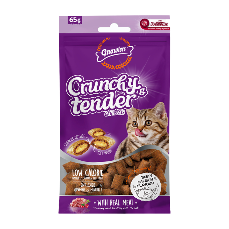 تشویقی گربه پره بیوتیک دار گناولرز نوتری مغزدار با طعم سالمون Gnawlers Crunchy Cat Treat With Salmon وزن 65 گرم
