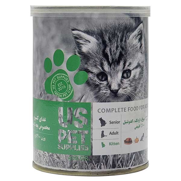 کنسرو بچه گربه یو اس پت طعم مرغ، اردک، کدوتنبل 400 گرم