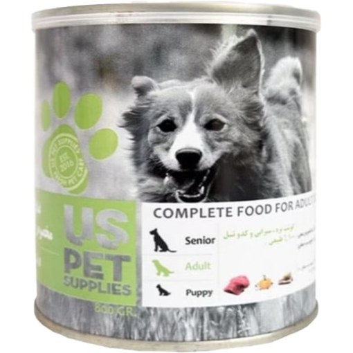 کنسرو غذای سگ یو اس پت با طعم گوشت بره و سیرابی و کدو حلوایی وزن 800 گرم