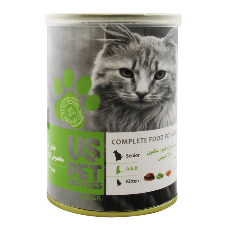 کنسرو گربه بالغ یو اس پت طعم مرغ، کدو، سالمون 400 گرم